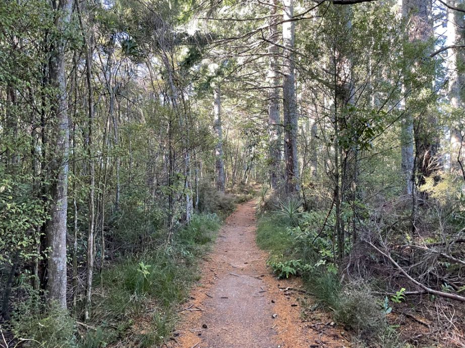 The White Pin trees are New Zealand’s iconic native forest giants, and they give the trail its serene, almost cathedral-like feel in places.