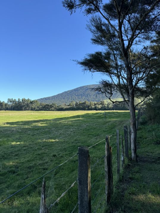 As we followed the trail, on the eastern side of the loop, we pass through alongside stretches of open farmland, which contrast beautifully with the bush and river scenery.