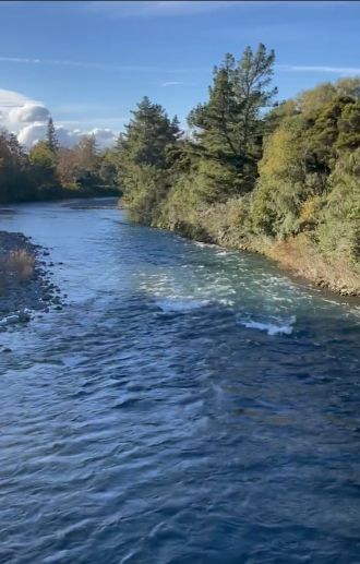 Under the bridge is a stream, it crosses is often shallow and clear, with rounded stones and a gently babbling flow which is a quiet contrast to the larger, faster Tongariro River.