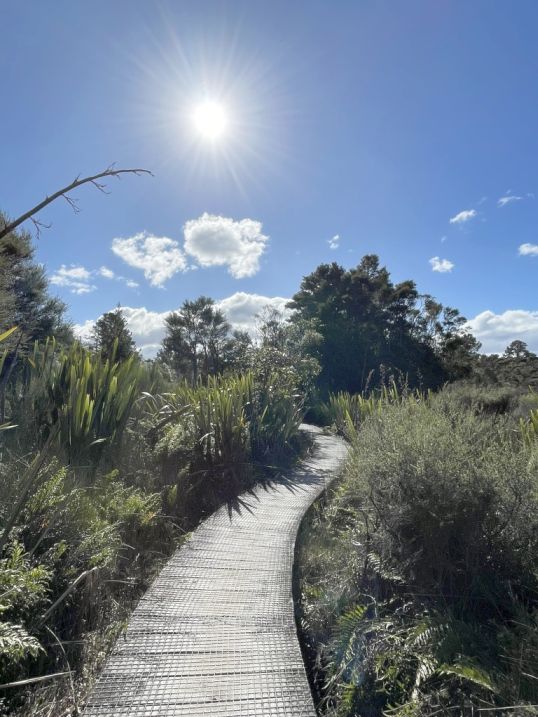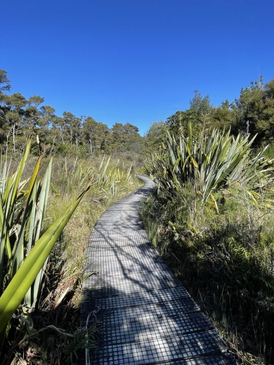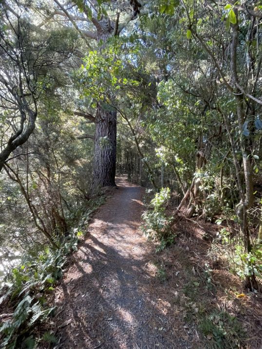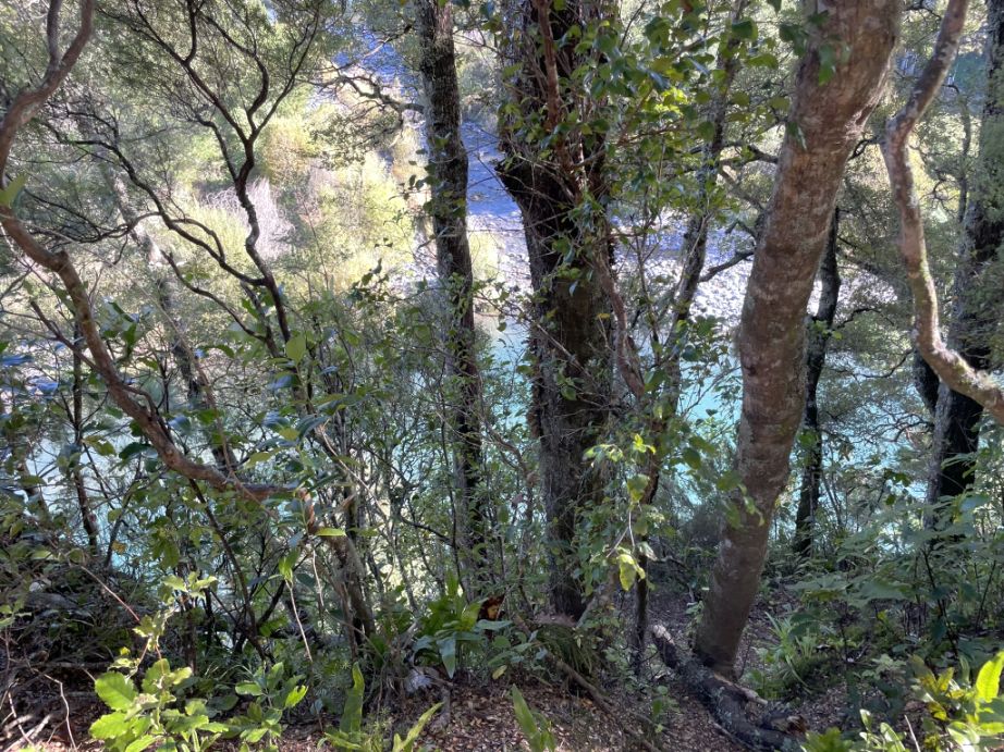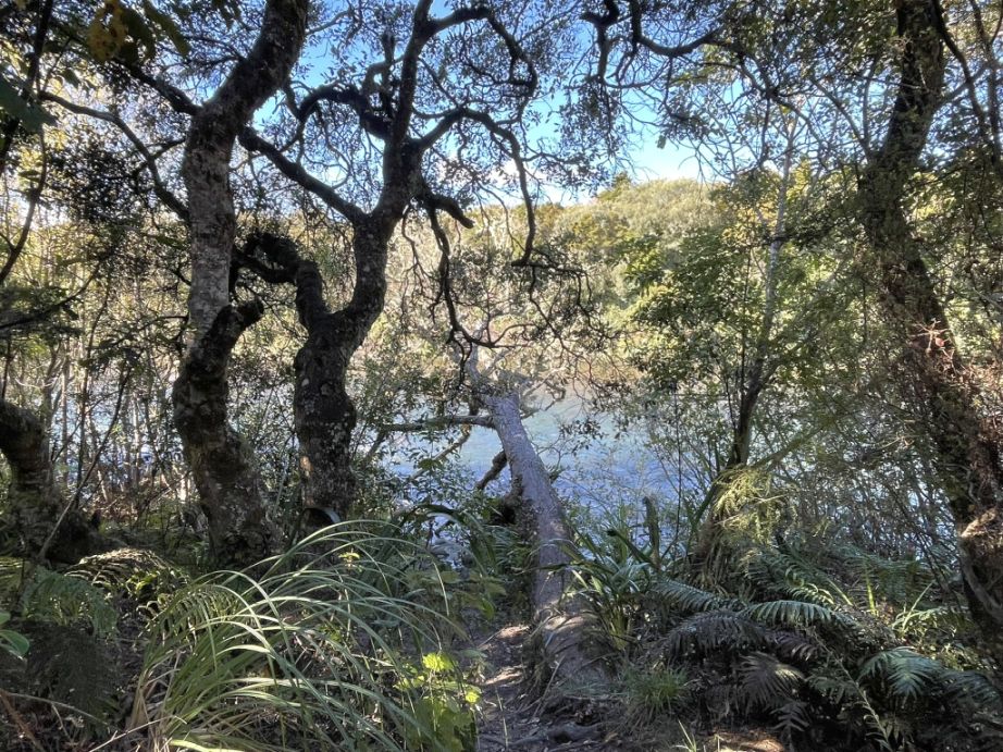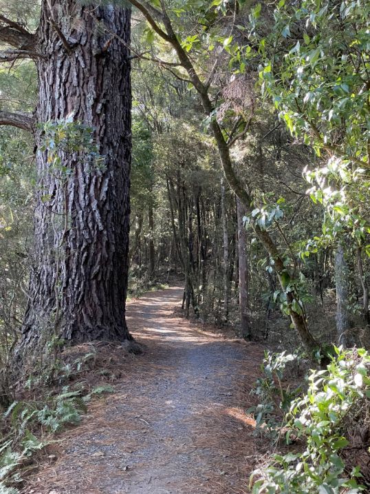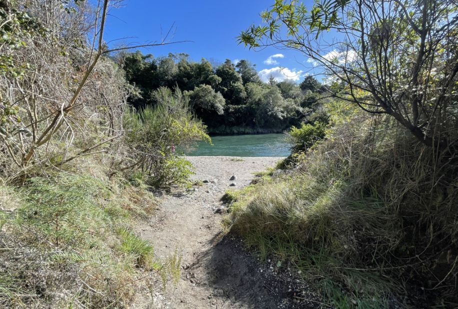 .After crossing the highway, the trail picks up again and continues into native bush, eventually looping toward the Red Hut Bridge side of the trail.