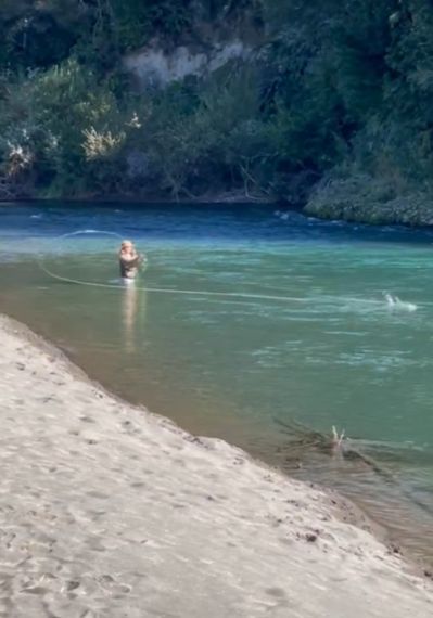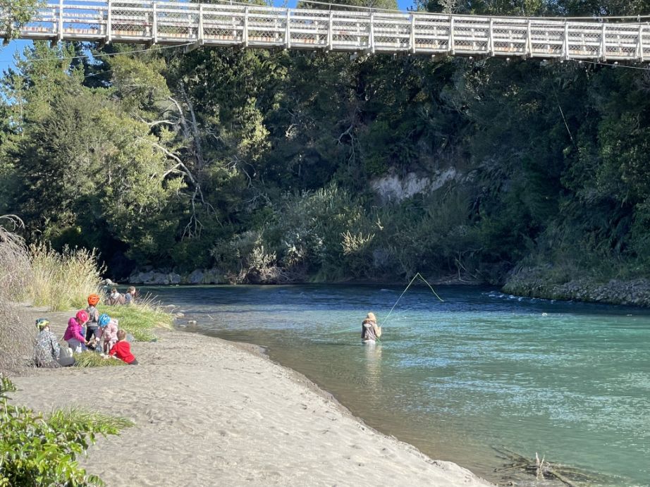 A fly fisher in action... The river’s clarity and consistent flow make it perfect for fishing. This stretch of the river has good access and is part of the Tongariro River Fishery, managed for sustainable angling.