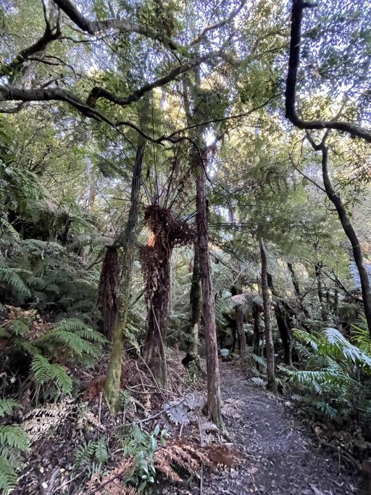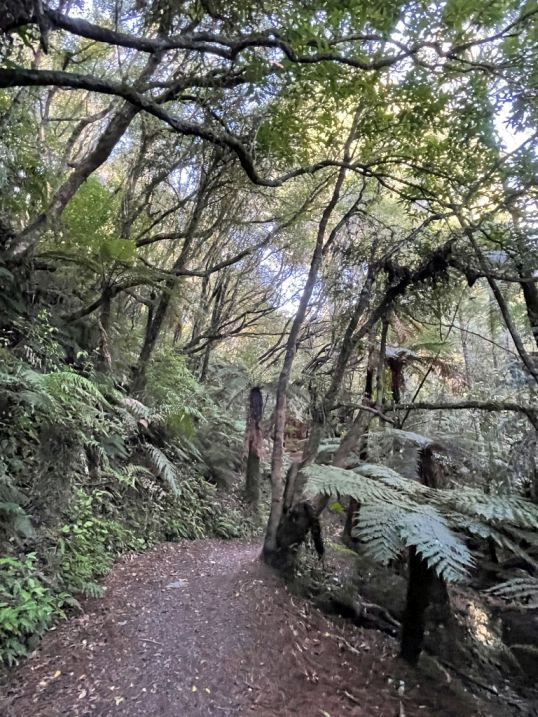 Native Trees with towering kahikatea, rimu, tōtara, and beech trees create a lush, shaded canopy.