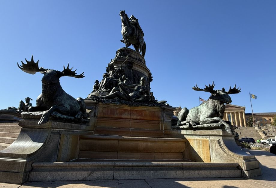 The Washington Monument at Eakins Oval, the grand equestrian statue of George Washington that anchors the foot of the Parkway before the steps of the Philadelphia Museum of Art. The monument was designed by German-American sculptor Rudolf Siemering and dedicated in 1897. It was one of the first major public monuments placed along what would later become the Benjamin Franklin Parkway.
