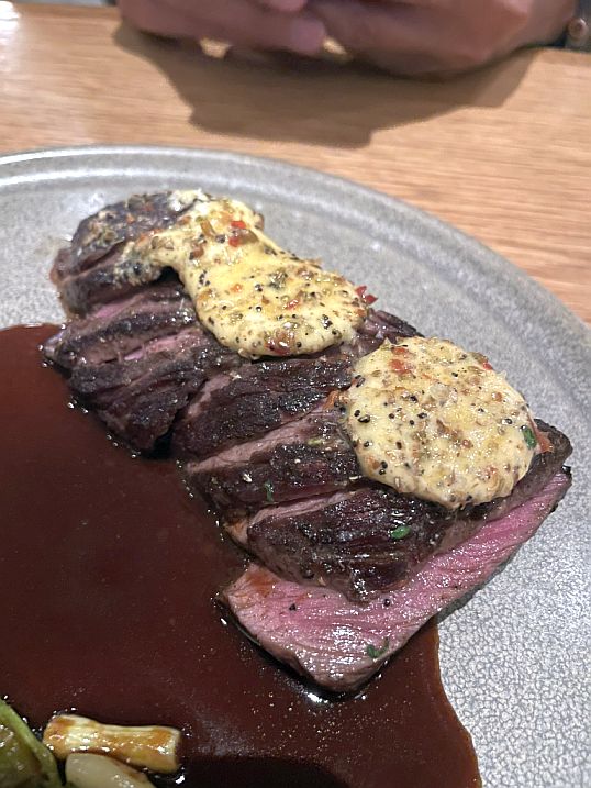 Alongside it was a beautifully cooked New York strip steak, finished with a red wine reduction and accompanied by blistered shishito peppers, wax beans, and crispy smashed potatoes that added just the right amount of texture and contrast.