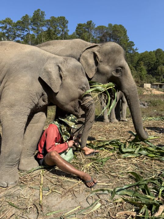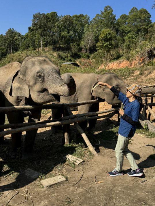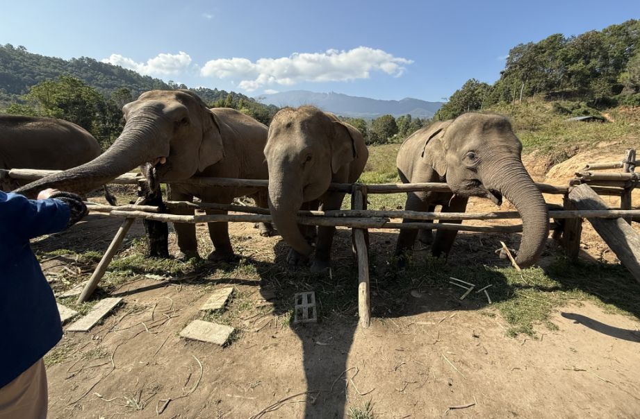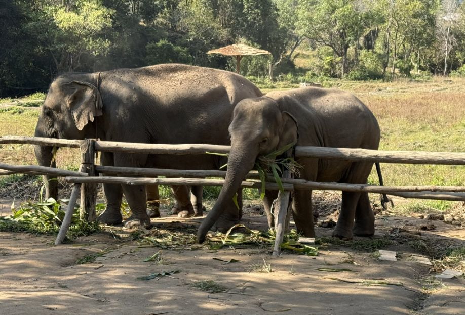 These elephants are what you might call “semi-free.” They are not confined in the way traditional camps once kept them, and they are no longer working in logging or giving rides. But they also can’t simply be released back into the wild. Many were born in captivity or have spent most of their lives around humans. They may lack survival skills, and in places like northern Thailand, there’s also limited safe habitat left for them. So sanctuaries like this exist in a kind of middle ground: they provide food, medical care, and protection, they allow more natural behaviors and social bonding. but they still rely on tourism to fund those operations.