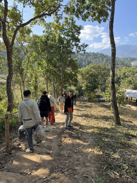As we arrived at the sanctuary, the bus came to a stop at the top of a gentle hill, and from there the experience immediately felt more grounded and immersive. Instead of a formal entrance, we began walking down a narrow dirt path, the earth uneven beneath your feet, shaded by trees and surrounded by the quiet sounds of nature.