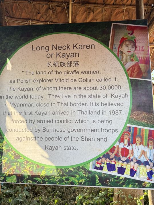 The Kayan people (long-neck) originally come from eastern Myanmar (Burma), particularly Kayah State. Due to conflict and political instability over the past several decades, many fled across the border into northern Thailand as refugees. The brass coils worn by Kayan women are a cultural tradition with debated origins, some say it symbolizes beauty and identity, while others believe it historically protected against tiger attacks or prevented women from being taken by rival tribes. Today, many Kayan communities in Thailand live in designated villages that are closely tied to tourism.