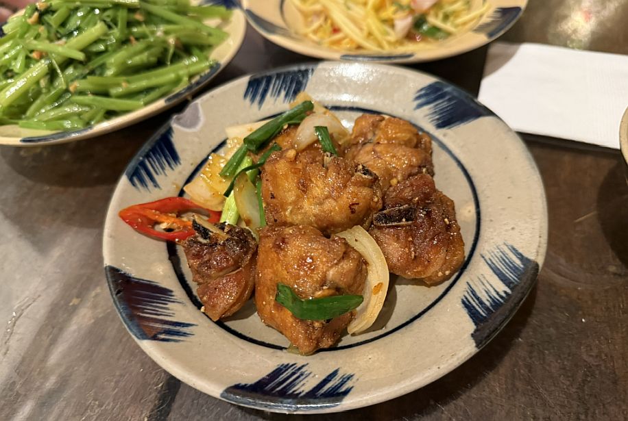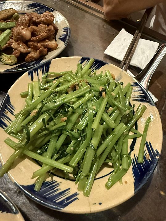 Sautéed morning glory on the left and on the right, a quick view of all the dishes we ordered.