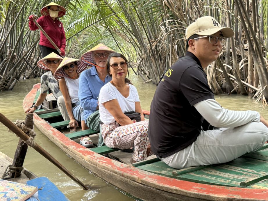 On Thoi Son Islet, we enjoyed fresh fruit and music, walked through lush village paths, visited a honey farm, and glided through shaded canals on a small sampan. After a quick stop at a coconut candy workshop, you had lunch on Phung Islet at Diem Phuong Restaurant, highlighted by the crispy elephant ear fish.