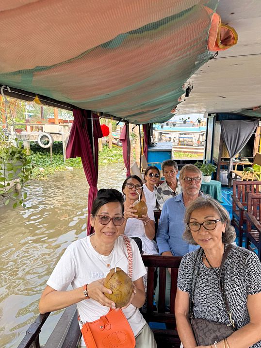 The day ended with a relaxing boat ride back, sipping fresh coconut juice as you took in the last views of the river before returning to Saigon.