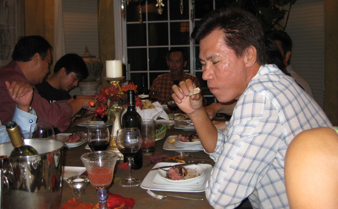 Tonight Loan and Minh are hosting a double birthday celebration for Tuan and Mui at their house!  Maily is the executive chef for the evening!
