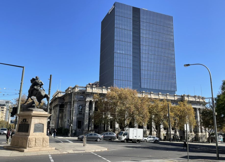 We are now standing on North Terrace, between King William Street and Kintore Avenue. The building to the right is the Parliament of South Australia, one of the oldest continuous democratic legislatures in the world. Construction began in 1874, but the full building wasn’t completed until 1939, more than 60 years later! The long delay was due to funding shortages and the enormous cost of its high-quality materials, including marble, granite, and sandstone.