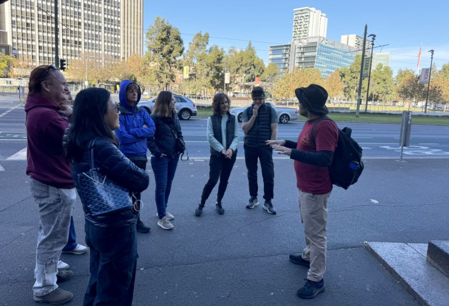 We met up with our tour guide on Victoria square and he is explaining the history of Adelaide.