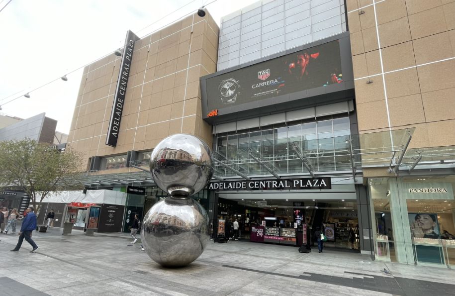 The Mall’s Balls, officially called “The Spheres”, are one of Adelaide’s most recognizable landmarks and a favorite meeting spot right in the middle of Rundle Mall. It was commissioned in 1977 as part of a city art initiative and installed in 1977–78. The work consists of two large stainless-steel spheres, each about 2.15 meters in diameter, stacked perfectly on top of one another and standing about 4 meters tall in total.