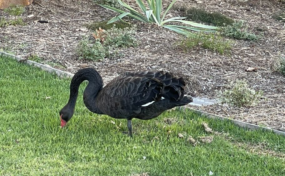its calm waters and grassy banks provide a perfect habitat for black swans.