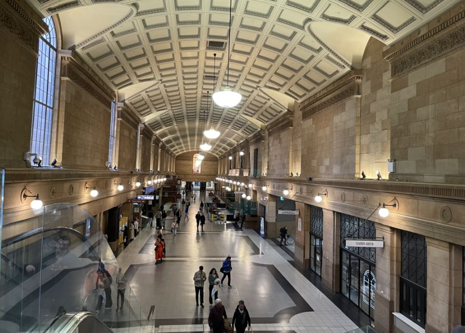 Inside, you can still sense the station’s history, the grand arches, polished stone, and echoes of early 20th-century travelers bustling through.