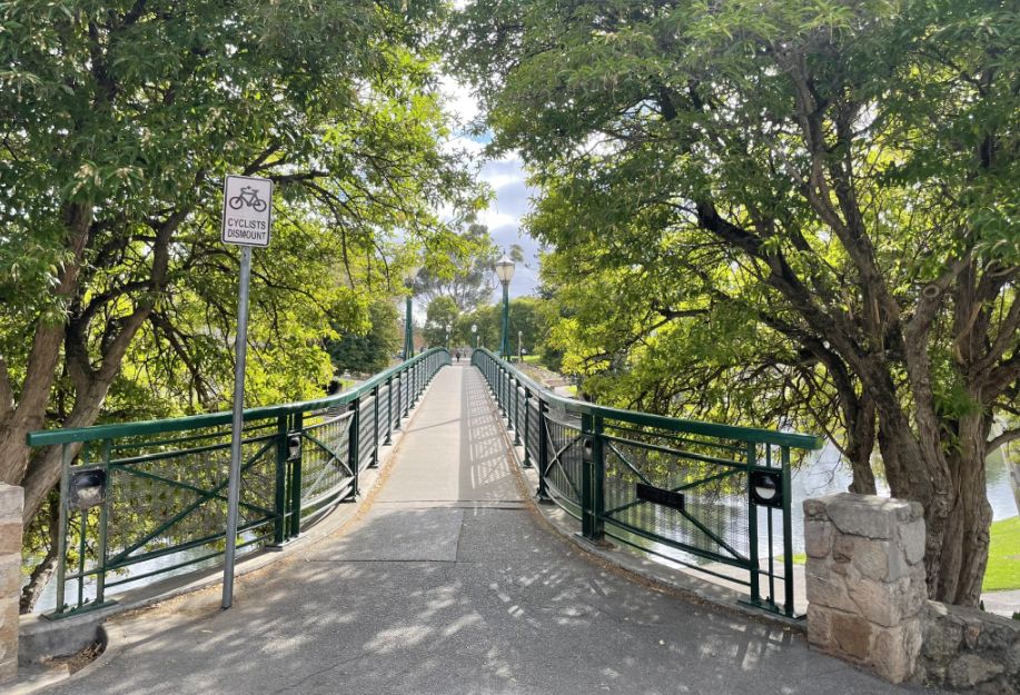 The bridge opened in 2014 as part of the redevelopment of the Riverbank precinct, and designed to make it easier for people to walk between the city and the oval, especially during events.