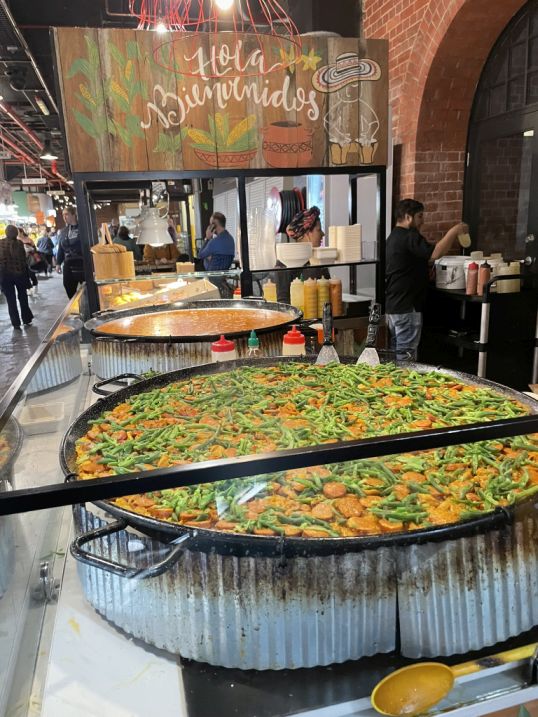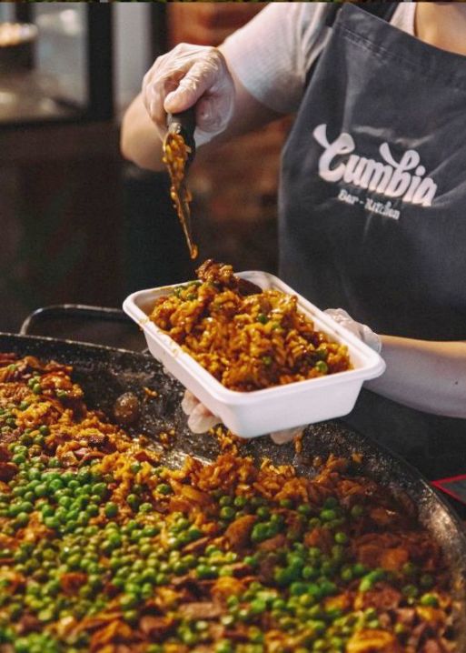 Cumbia Bar Kitchen is known for its lively atmosphere, warm hospitality, and especially those huge sizzling pans of paella, which i a real showpiece of the market!