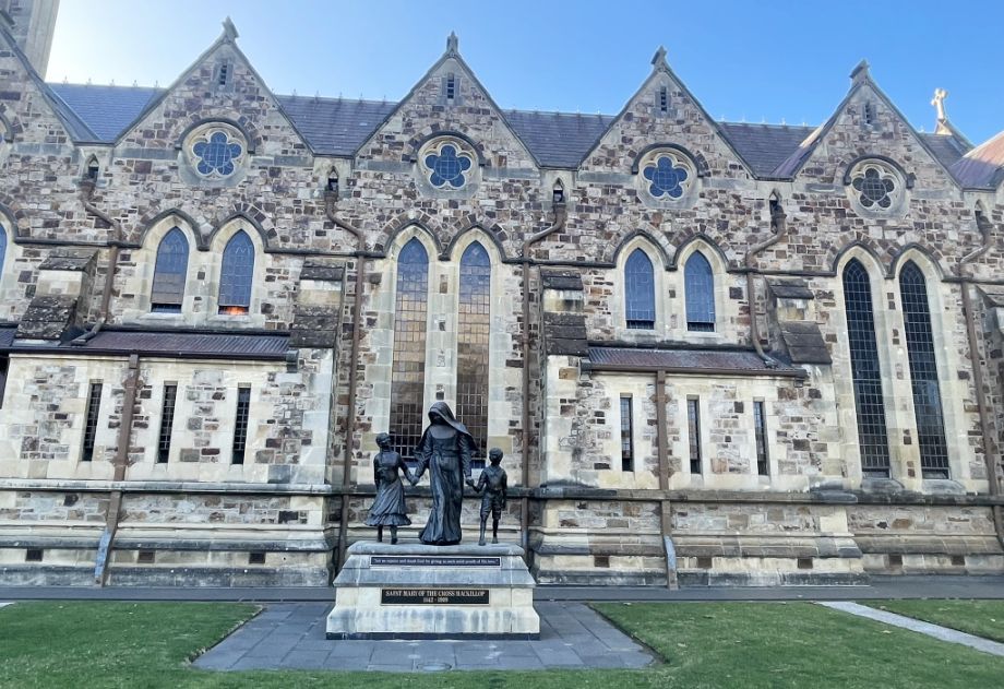 A sculpture of St Mary of the Cross MacKillop in the courtyard of St Francis Xavier’s Cathedral is a meaningful addition to the site, it connects Adelaide’s Catholic heritage with Australia’s own saint.