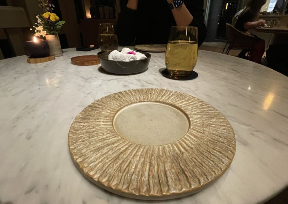 As we sat at our table, we could see all the chefs working behind the counter. Each one moved with quiet precision, focused, calm, and completely absorbed in their craft. It felt almost like watching a performance, every motion deliberate and graceful. In the center stood Justin James, guiding the flow of the kitchen with quiet authority.