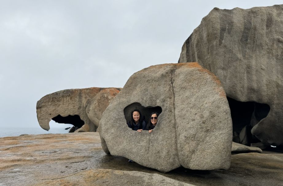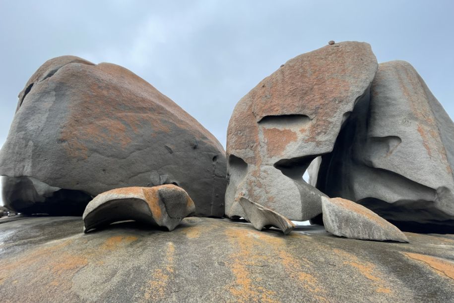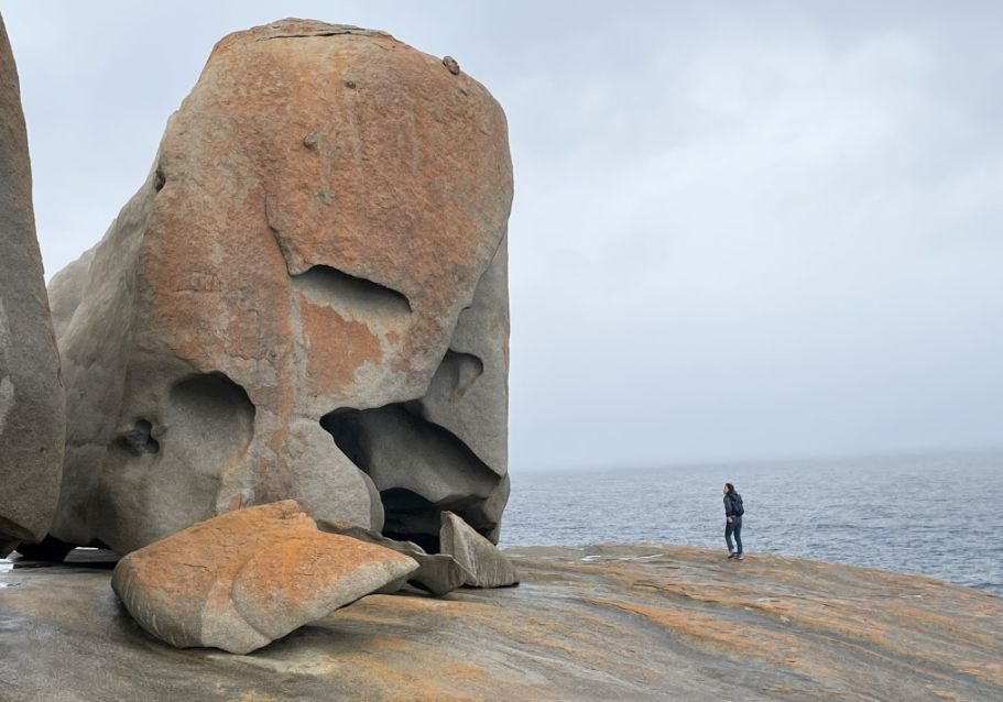 We are now a few feet away where the walkway ends and the granite world begins. It’s one of those views where Kangaroo Island feels raw, ancient, and alive all at once.