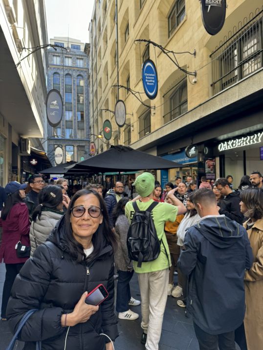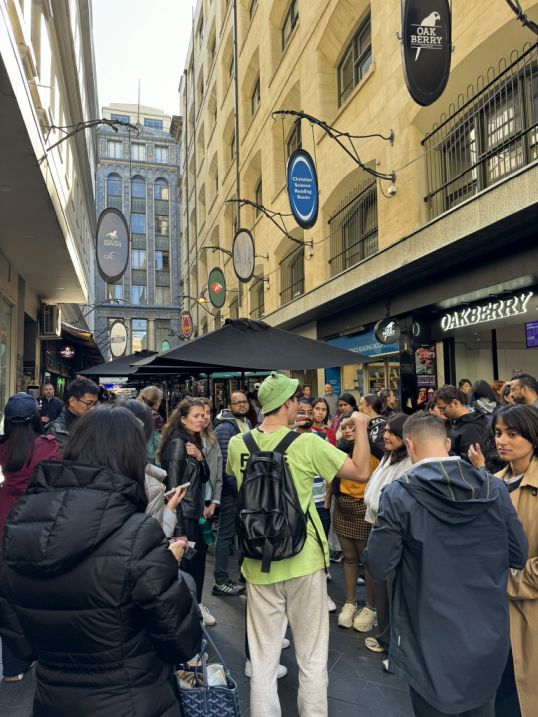 We are now walking through Block place, a small open-air walkway, shops and restaurants on both sides, lots of pre-war buildings, with a cozy atmosphere. At the end of Block Place, we will step straight into the Block Arcade, almost like passing from a cozy street market into a grand European galleria. The transition is striking, one moment you’re in a casual laneway with chatter and coffee aromas, and the next you’re surrounded by arched hallways, glass ceilings, and mosaic floors.