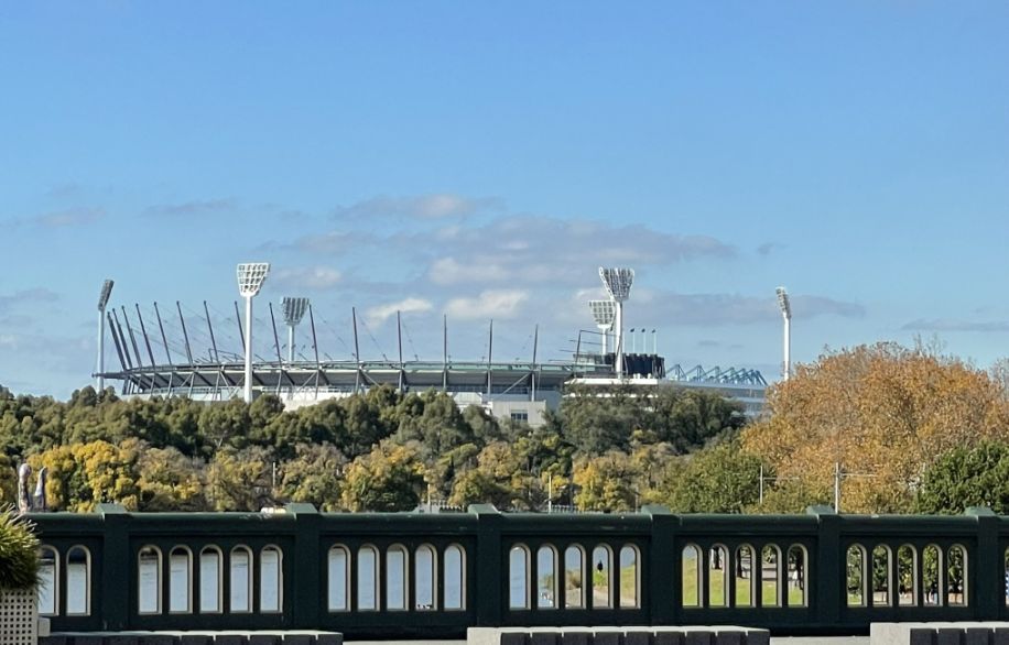 From the bridge we could see the Melbourne Cricket Ground (the “MCG”), a large oval stadium that is one of the world’s most famous sports stadiums. It’s primarily built for cricket and Australian Rules Football. The shape is oval, which allows for both large crowds and expansive field dimensions. With a capacity of over 100,000 people, it’s one of the largest stadiums in Australia.