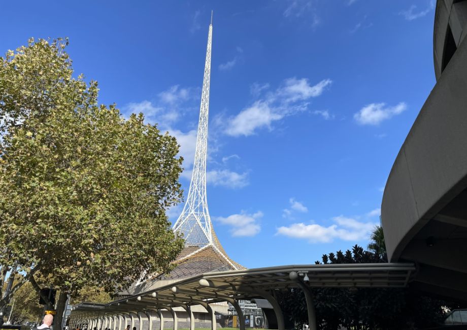 The iconic Arts Centre Melbourne spire sits on top of the Arts Centre Melbourne, which is the city’s main performing arts complex, located on St Kilda Road near the Yarra River. The lattice work steel design of the spire was inspired by the Eiffel Tower, reflecting a delicate, airy framework that points dramatically into the sky. The design was meant to evoke both a theater spotlight reaching upward and the sense of elegance tied to the performing arts. Sometimes nicknamed “Melbourne’s Eiffel Tower.”