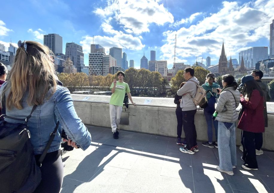 We crossed the street and we are now standing on the Princes Bridge which crosses the Yarra River. The Yarra River is Melbourne’s defining waterway, winding its way for more than 149 miles from the Yarra Ranges down to Port Phillip Bay. For thousands of years, it was central to the lives of the Wurundjeri Woi Wurrung people, who relied on it for food, water, and as a gathering place.