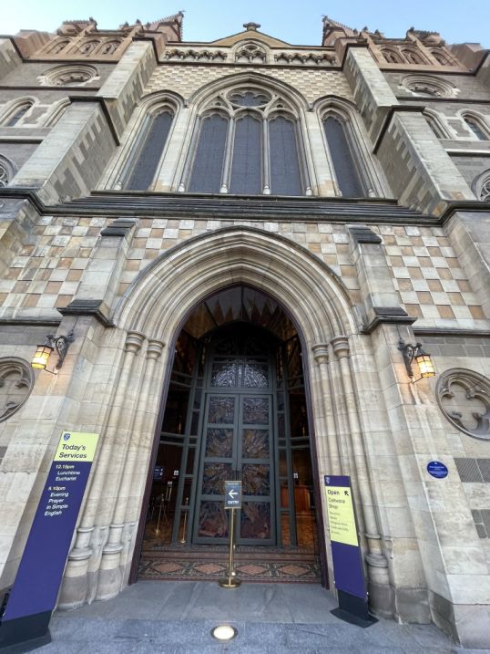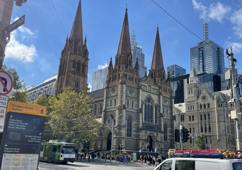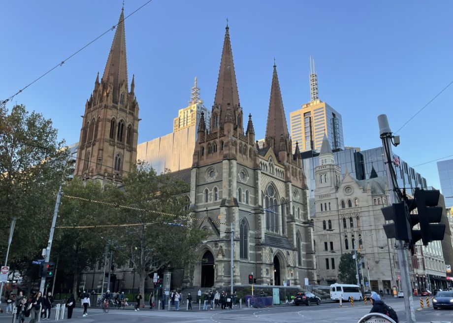 We are now in the Collins Precinct, and straight ahead is Saint Paul Cathedral. We will come back later to visit as it is closed right now.