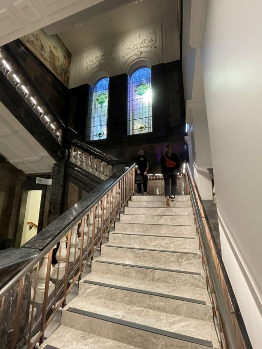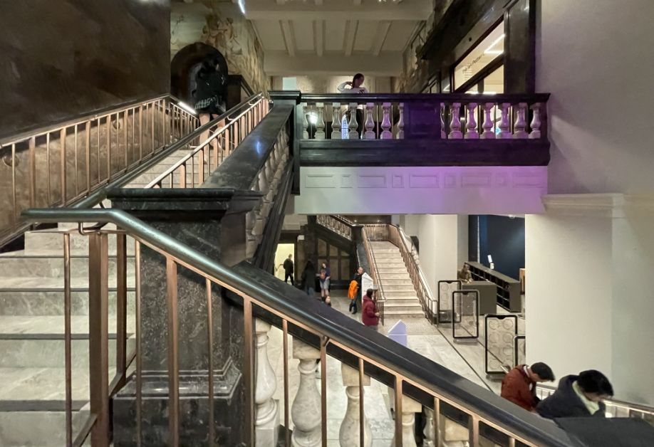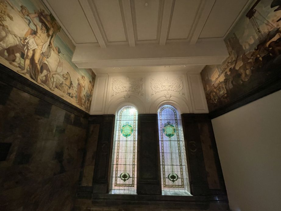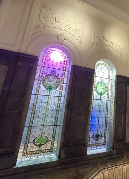 We are now going upstairs and on our way we see these 2 beautiful Stained glass windows that were installed in the early 20th century and are rich in symbolism. They celebrate knowledge, wisdom, and the arts, fitting themes for a great public library. The designs reflect the Victorian era’s love for grandeur and learning.