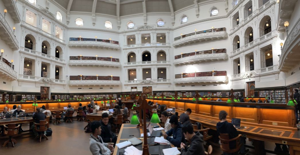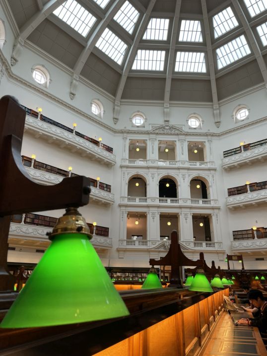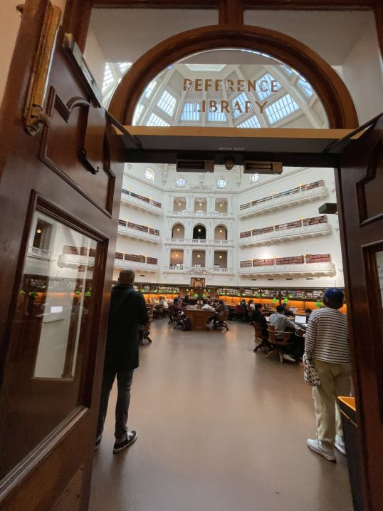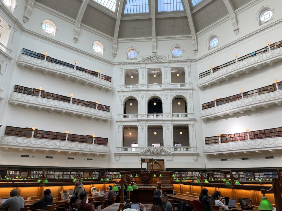 We are now at the State Library of Victoria. Founded in 1854, it is Australia’s oldest public library and one of the first free public libraries in the world. he library was established with the idea that knowledge should be available to everyone, regardless of wealth or status, a very forward-thinking concept at the time.