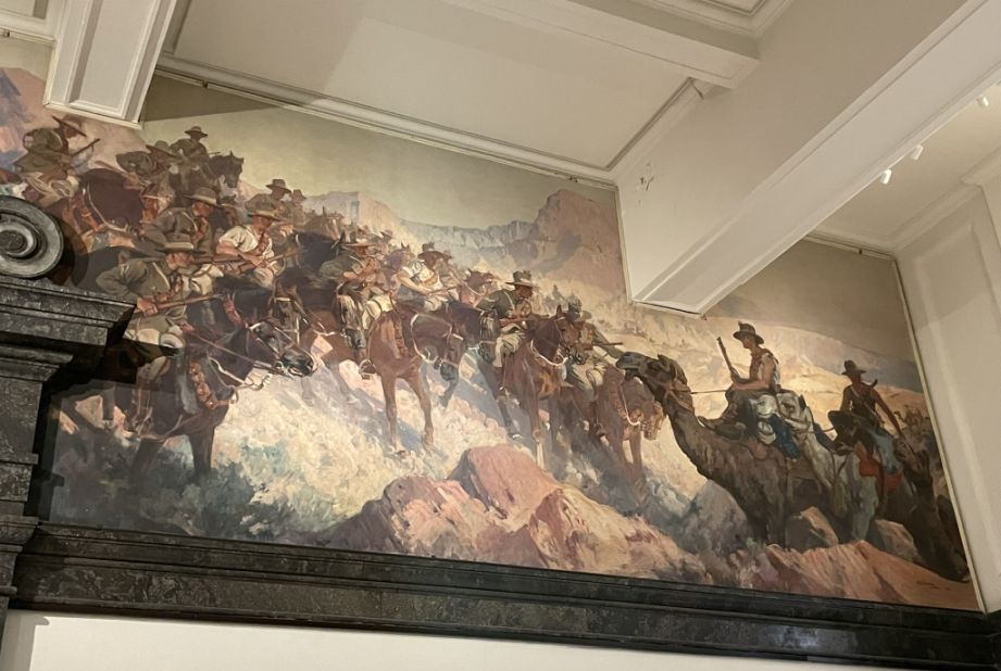 Australian Light Horse regiments with these mounted soldiers became iconic for their role in the Boer War (1899–1902) and later in World War I, particularly the famous charge at Beersheba in 1917. The mural captures the spirit of mounted troops riding across difficult terrain.