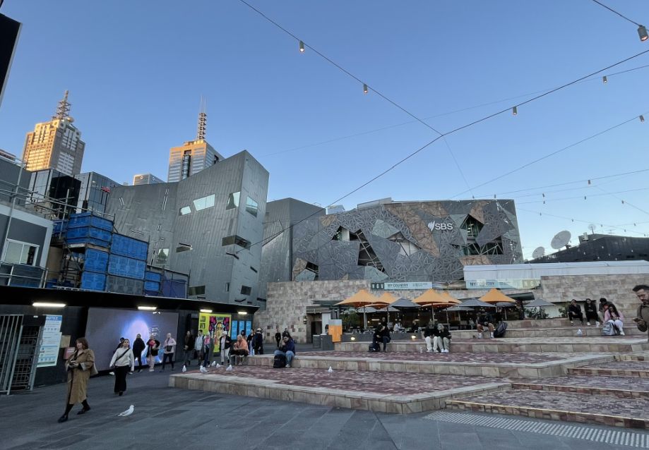 The square is also the home of ACMI (Australian Centre for the Moving Image), dedicated to film, TV, and digital culture.