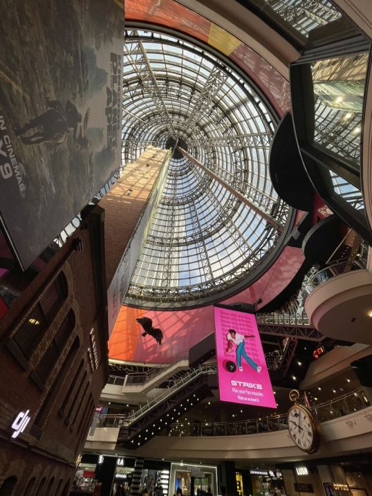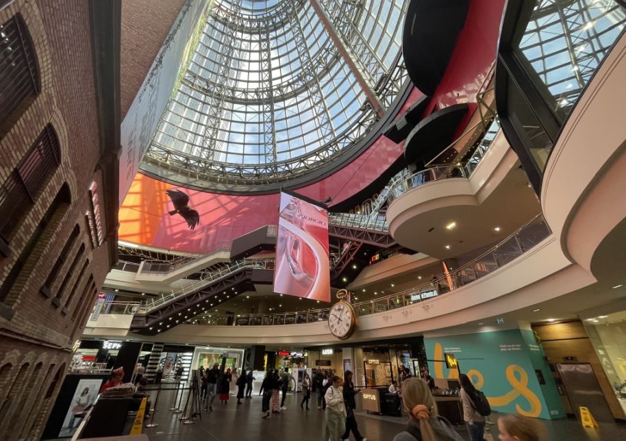 Inside, there’s a stunning soaring glass dome ceiling that fills the space with light. The dome creates a sense of openness and elegance, making it feel almost like stepping into a miniature theatre foyer. The Block Court once housed Bijou Theatre nearby (long since gone), and the dome area has always been tied to Melbourne’s culture of mixing retail, leisure, and entertainment. Today it’s more of a shopping atrium, but the glass dome and proportions still give it that dramatic, theatrical quality.