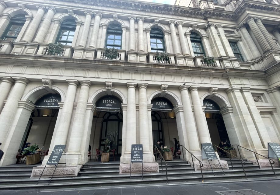 Today we set out on a city tour of Melbourne but before our city tour started, we stopped for breakfast at Federal Coffee, tucked under the historic arches of the Melbourne GPO building (General Post Office) at Bourke & Elizabeth Street.