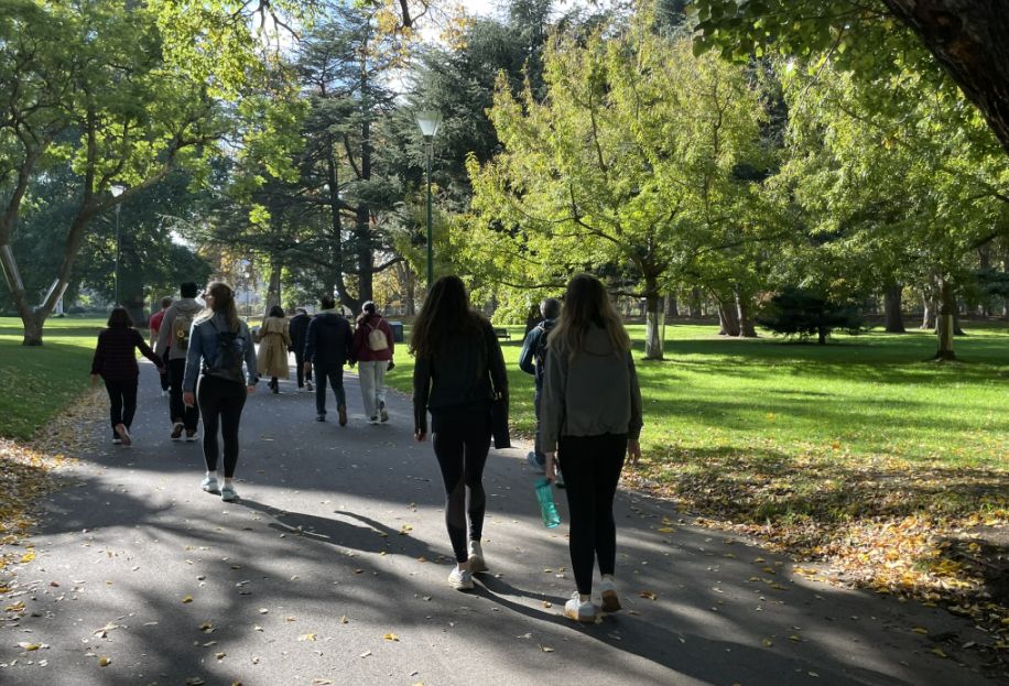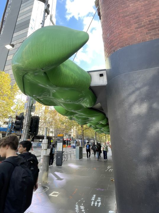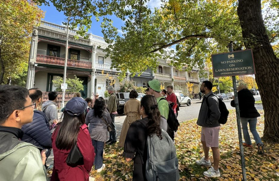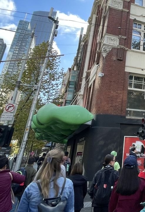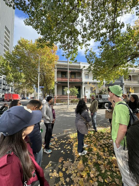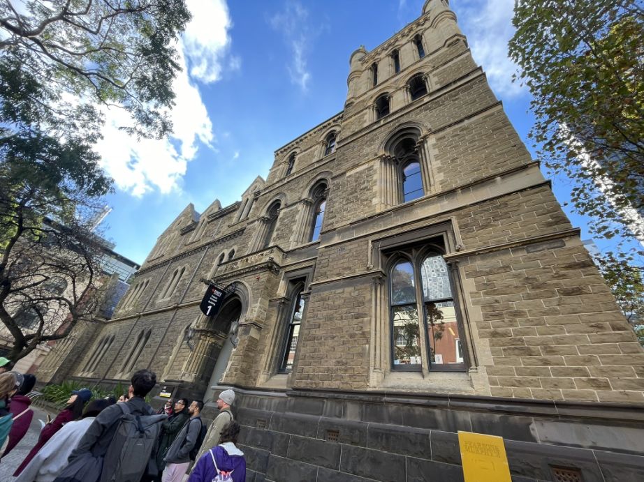 From the library’s sweeping steps, we set off with our guide toward the University of Melbourne. Along the way, we passed by the striking Green Brain building at RMIT University.