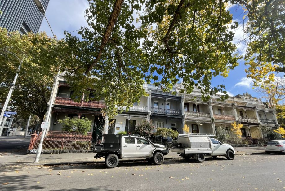 These houses have been, historically, residences but also used as hostels/student housing in part. The proximity to skyscrapers above is common in Carlton. You see old terraces next to modern high-rises, which creates that contrast of eras.