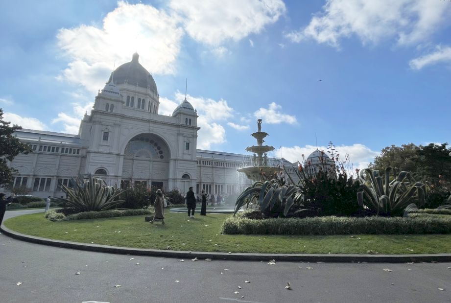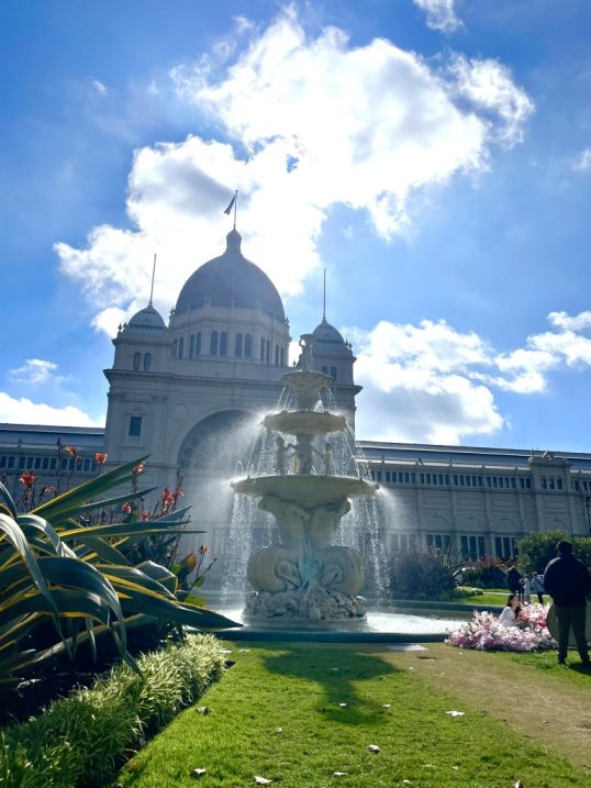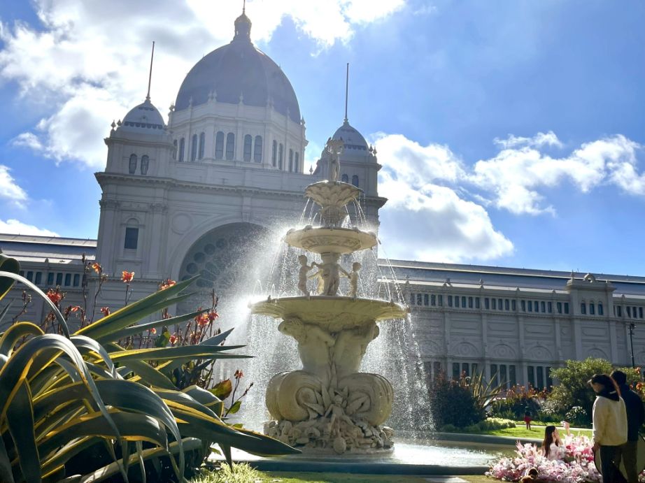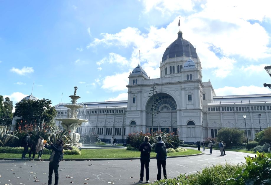 The white building is the Royal Exhibition Building, one of Melbourne’s most historic and iconic structures.
