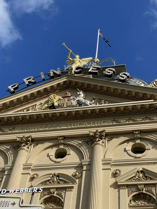 We are now at the Princess Theater, one of Melbourne’s most beautiful and historic performance venues. The current building opened in 1886, designed by architect William Pitt in the Second Empire style, which was fashionable at the time with its French-inspired mansard roofs, elaborate façade, and ornate decoration. It has long been a centerpiece of Melbourne’s theatre district, hosting everything from grand opera and Shakespearean plays to blockbuster musicals. It’s considered Australia’s oldest continuously operating entertainment site of its kind.