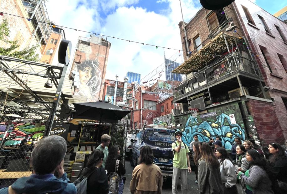We are now in the back street of Collins street Precinct, which is part of Melbourne’s reputation as a global street art capital. While Collins Street is traditionally known for its luxury and heritage, the laneways branching off it (like Hosier Lane, AC/DC Lane, and others) are filled with striking murals that bring a more contemporary, creative layer to the neighborhood. These murals often change, but many are done by well-known local and international artists, turning Melbourne’s walls into open-air galleries.