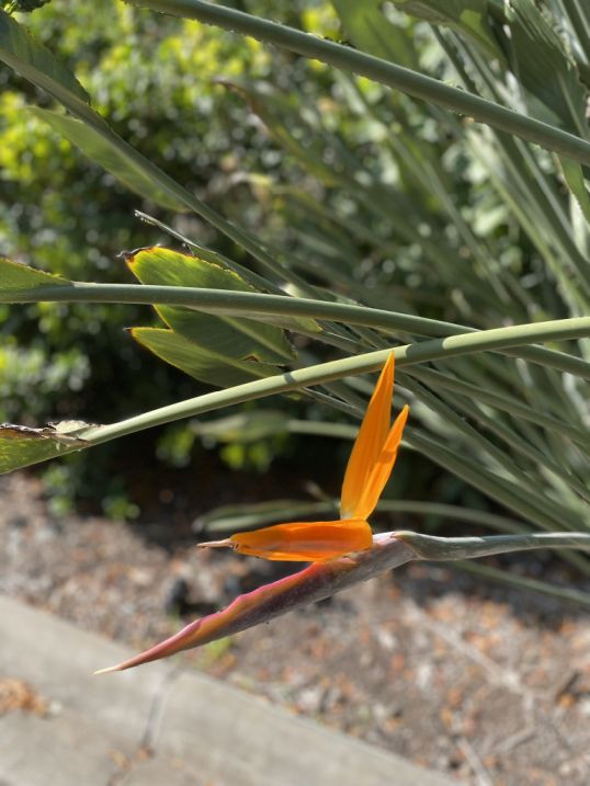 Fan Aloe, one for the striking succulents in the gardens. Unlike many other aloes, this one has a distinctive shape: its flat, fan-like arrangement of leaves spreads out in neat rows, almost like an open hand. We are in the fall and there are still orange-red flower spikes in bloom.