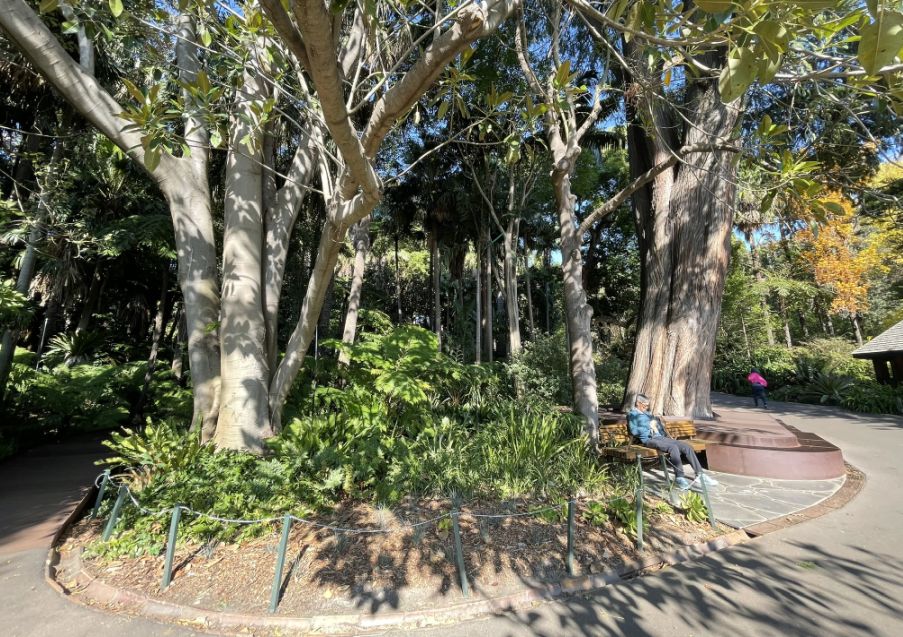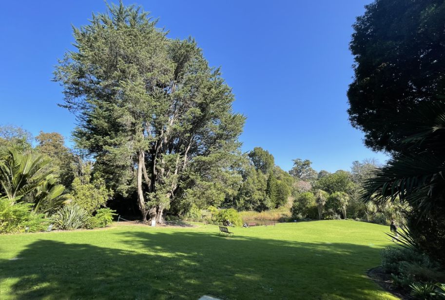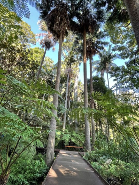 As we followed the pathway deeper into the Gardens, the landscape suddenly feels grander, the giant trees rise above you like natural cathedrals. Many are heritage-listed specimens, planted in the mid-1800s when the Gardens were first established. There are towering English elms, graceful cedars of Lebanon, and majestic Moreton Bay figs with their sprawling roots curling across the ground.