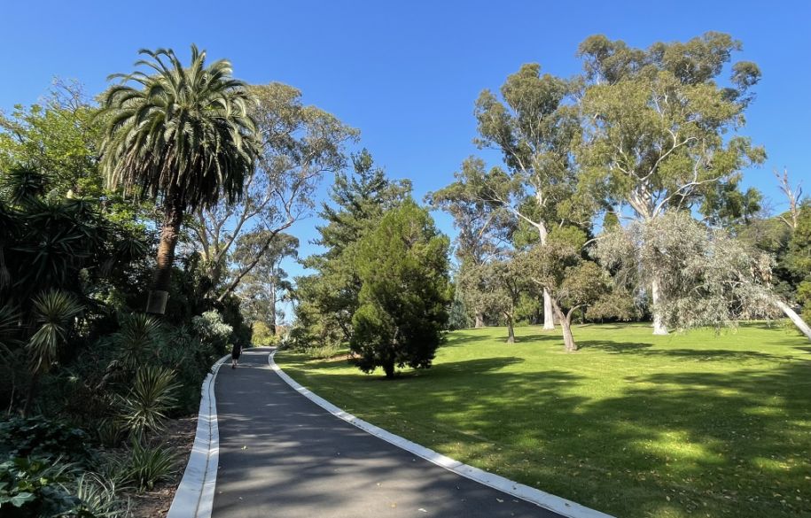 We are now following the pathway leading to the Royal Botanical gardens, the city noise begins to fade, replaced by birdsong and the rustle of leaves.