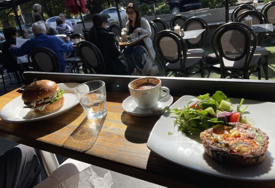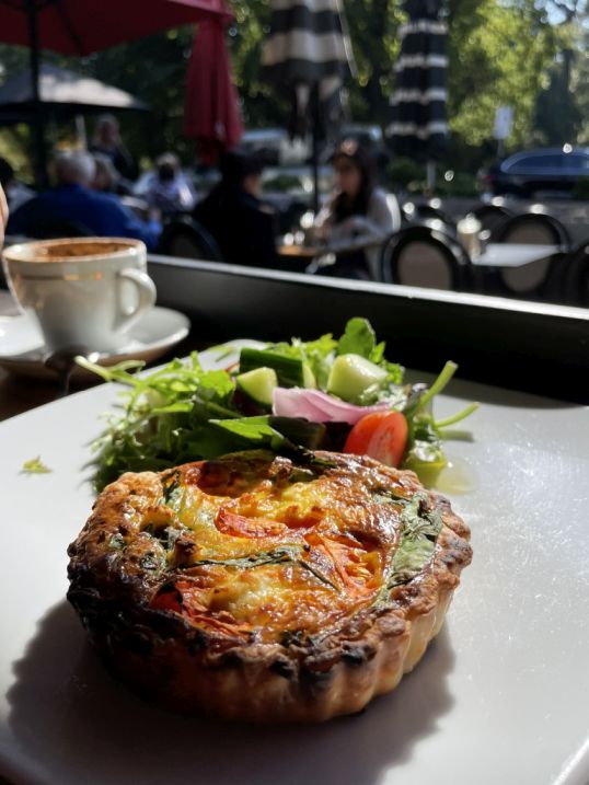 I had a vegetable quiche with a salad and Hoa ordered a hamburger.