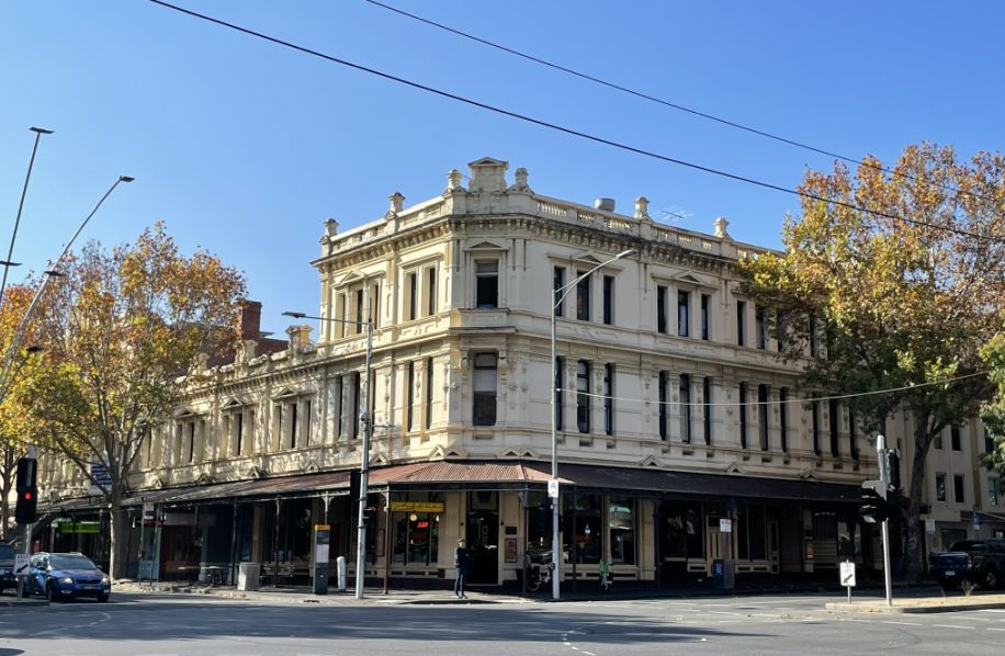 At the corner is the heritage-listed landmark that sits proudly on the corner of Lygon Street and Victoria/Queensberry Street, and is one of the oldest union buildings still in use anywhere in the world. The ornate cream-colored façade, with its tall windows, columns, and balustrades, reflects the Renaissance Revival style popular in Melbourne during the mid to late 19th century. The ground floor has been adapted over time for modern use with cafés, bars, and small eateries bring daily activity to what was once purely a union stronghold.