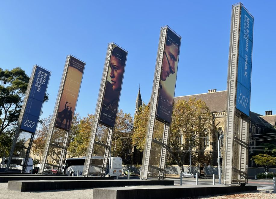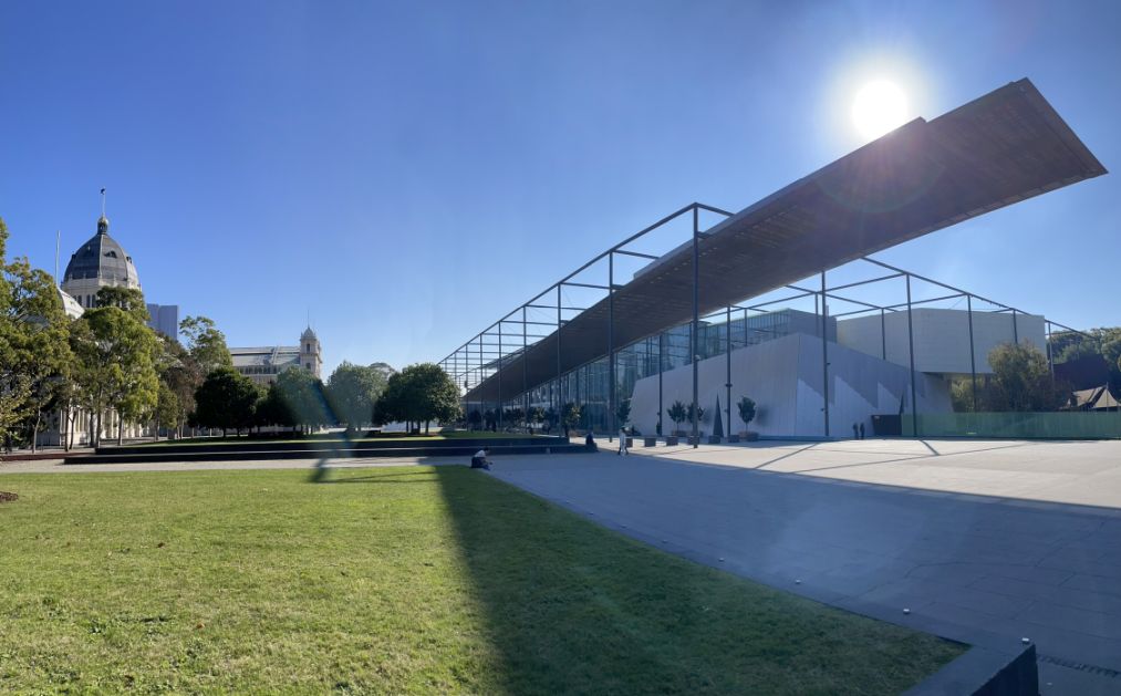 Its stark, minimalist lines were deliberately designed to contrast with the ornate dome and classical façade of the Royal Exhibition Building right behind it. The Blade is part of their signature style, bold, geometric forms that define space and act almost like sculptural landmarks.