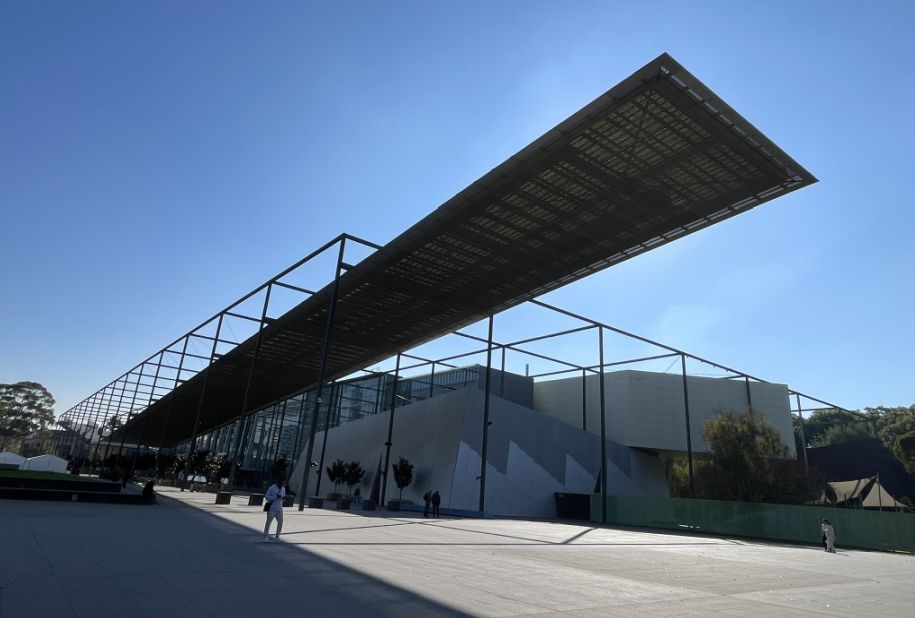 At the entrance of the Melbourne Museum there are five huge elongated panels that are part of the Bunjilaka Aboriginal Cultural Centre, which is integrated into the museum.