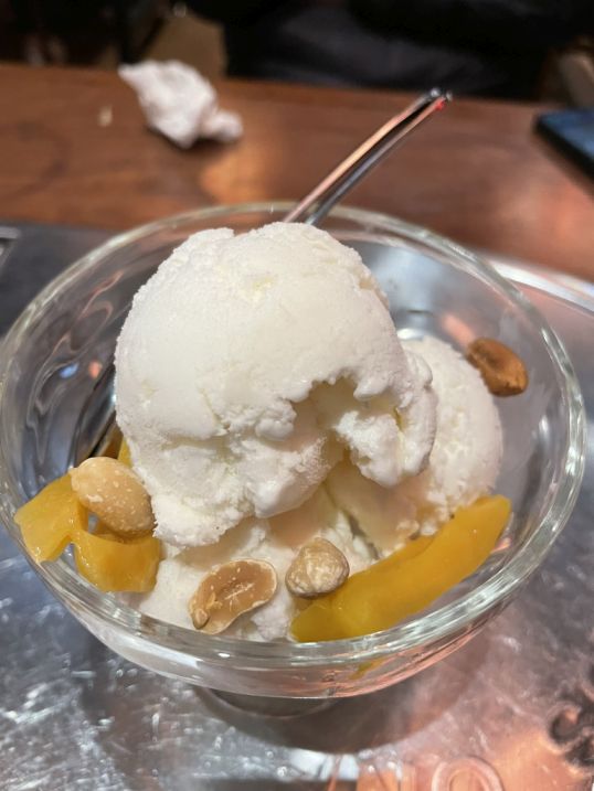 Ending the meal with a coconut ice cream. Overall, we had a really dinner here. The food was very good, friendly service, and the ambiance was also very nice.