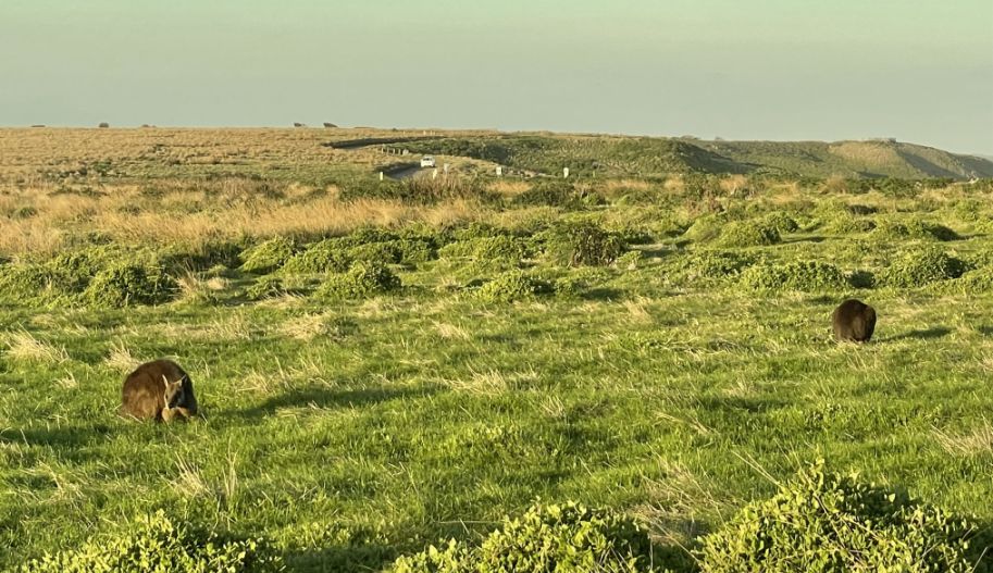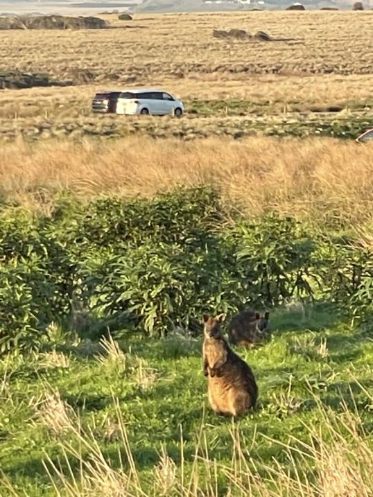 We hopped on the bus and we are heading to the Penguin Parade. Along the way, the bus took us to a scenic road called "The Boulevard" located on the southern coast of Phillip island. We passed by green grasses and brush along the trail and we saw so many wallabies coming out as they are most active during dawn and dusk.